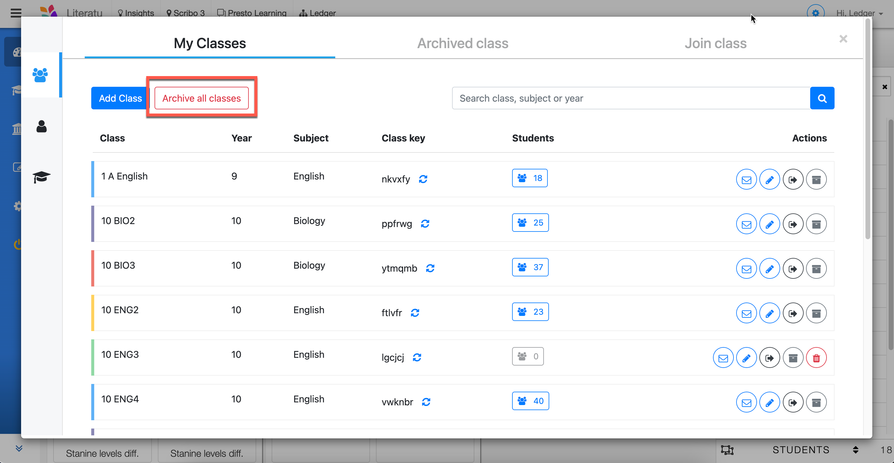 4. Click 'Archive all classes'